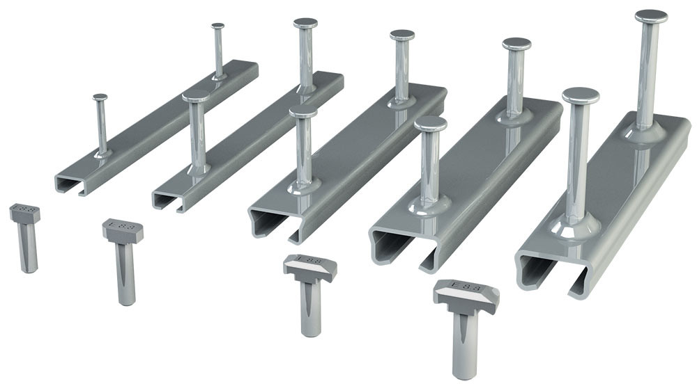 Los Sistemas de Anclaje EDILMATIC están compuestos por Perfiles Acanalados de acero, rellenos con esponja de diversas formas y dimensiones, para colocar en los moldes antes de verter el hormigón. Una vez finalizado el vertido, al retirar el relleno de esponja, se crean en los distintos elementos zonas de anclaje (huecos acanalados) aptas para albergar una amplia gama de accesorios para la realización de los anclajes previstos en la construcción de las estructuras. Las formas y dimensiones de los perfiles son variables según las cargas. La gama disponible permite aplicaciones con cargas de diseño de hasta 26 kN.