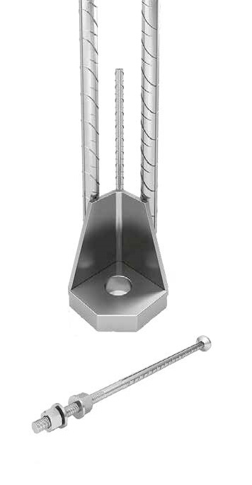 In fase di montaggio del pilastro in cantiere, le scarpe vengono bullonate ai tirafondi e - dopo la regolazione della verticalità del pilastro - si procede ad un getto di completamento con malta ad alte prestazioni.