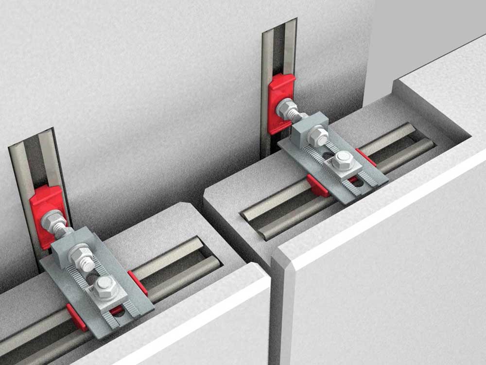 Il nuovo sistema viene proposto per la ritenuta di pannelli di tamponamento orizzontali, ma è adattabile anche ad altre tipologie di manufatti. E’ previsto l’utilizzo di profili incavi standard, di due “Giunti Scorrevoli GS” e di una piastra di collegamento “EDIL S” con bulloneria ed accessori di fissaggio. Sono disponibili due tipologie di Giunti da abbinare a 4 diverse tipologie di profili con resistenze di progetto “Rd” comprese tra 11 kN e 32 kN.
