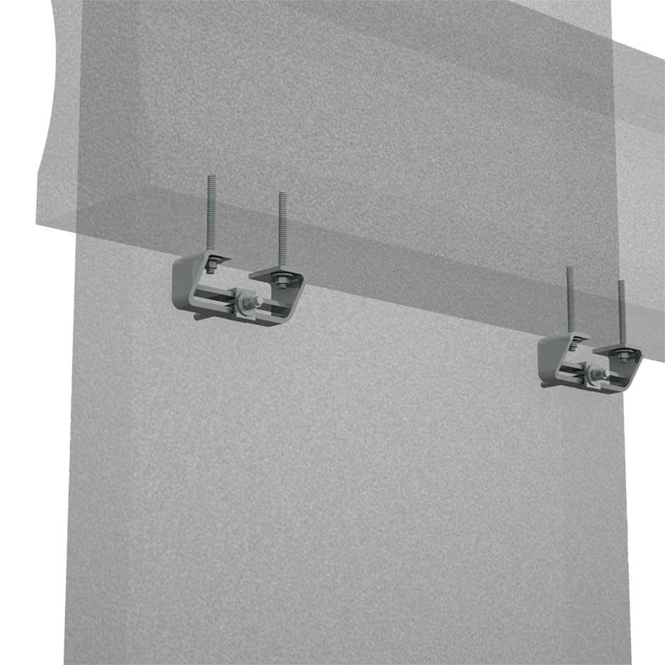 La staffa va fissata tramite tasselli M16 alla trave in calcestruzzo. Un ulteriore tassello viene predisposto lato pannello per il successivo accoppiamento con il carrello e la guida della staffa. Dopo l’installazione, in particolare in intradosso trave, la connessione risulta facilmente ispezionabile e accessibile per eventuali operazioni di manutenzione.